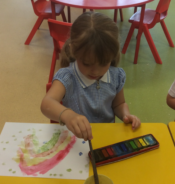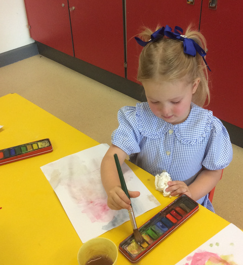 We have worked as a team to create a large patchwork Elmer using lots of different colours and materials. Another one of our favourite activities this week has been colour-mixing. We have had a great time mixing colours to see which new ones we can create!
