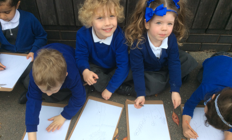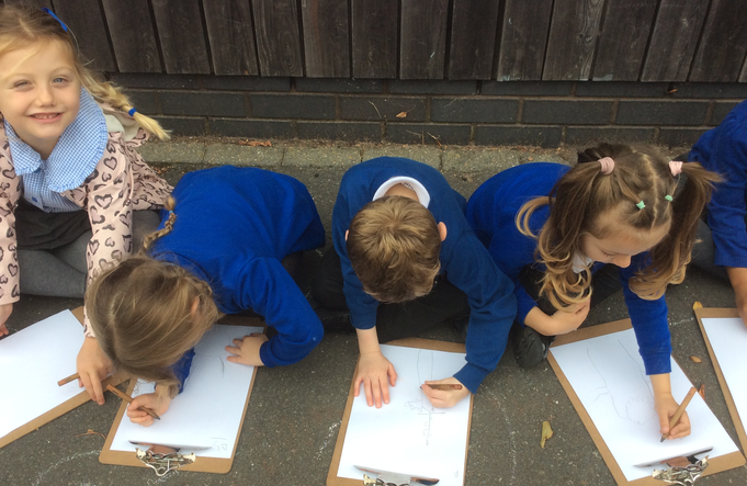 Recently, we have been focusing on observational drawing. We went outside to our garden and had a go at drawing the large tree! We focused on the structure of the tree and then looked at the details. We then selected our chosen materials to add colour to our drawings. We noticed that some of the leaves on the tree had