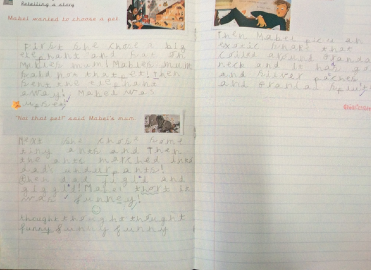 We’ve practised using the conjunction ‘and’ to join our ideas, as well as sequence words like ‘first,’ ‘next,’ and ‘finally’ to help us retell Not That Pet! We explored new vocabulary too—like ‘exotic’ to describe unusual animals, and ‘spluttered’ to show how a character might speak when surprised.