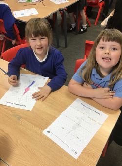 In Maths, we explored 3D shapes by naming and describing objects like cubes, spheres, cones, and cylinders. We talked about faces, edges, and vertices, and hunted for shapes around the classroom. We enjoyed discovering how many 3D shapes appear in everyday life such as cylinders for our water bottles, cubes for dice and boxes and spheres for footballs and marbles.
