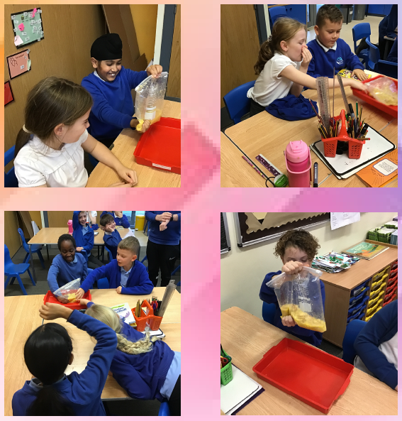 Year 4 have practically investigated how the body breaks down and digests food. We saw our food (crackers and bananas) broken down by acid (orange juice) and saliva (water) in the stomach (a sealable bag) before it made its exit from the body. An informative and occasionally amusing time was had by all.